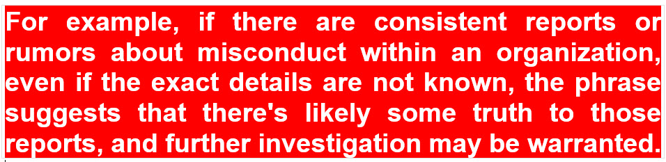 The phrase “where there is smoke, there is fire” is an idiomatic expression that suggests where there are signs or indications of something suspicious or alarming, there is likely some truth to it. In other words, it implies that if there are rumors, hints, or evidence of a problem or wrongdoing, there’s probably some basis for those suspicions.
